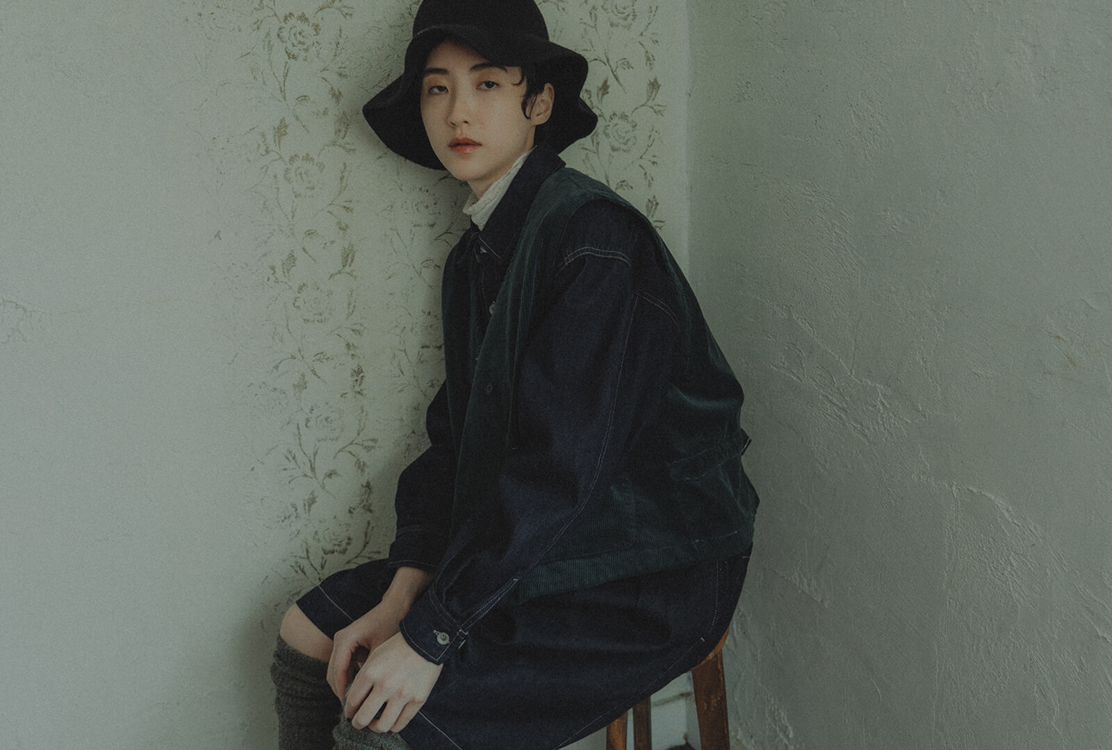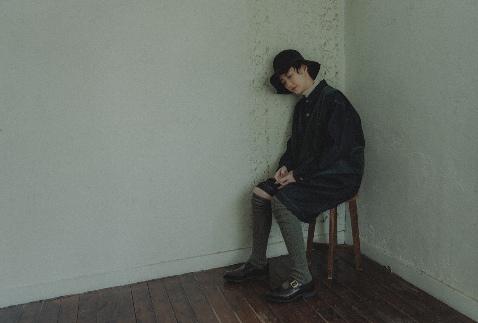 オンラインショップ限定カラーとして登場するDark Greenは、ベースとなる生地にオーバーダイを施し、あえて加工を加えないことで、生地本来のハリと深みある発色をそのまま活かした仕上がり。トラディショナルな印象を纏いながら、より端正で静かな佇まいです。