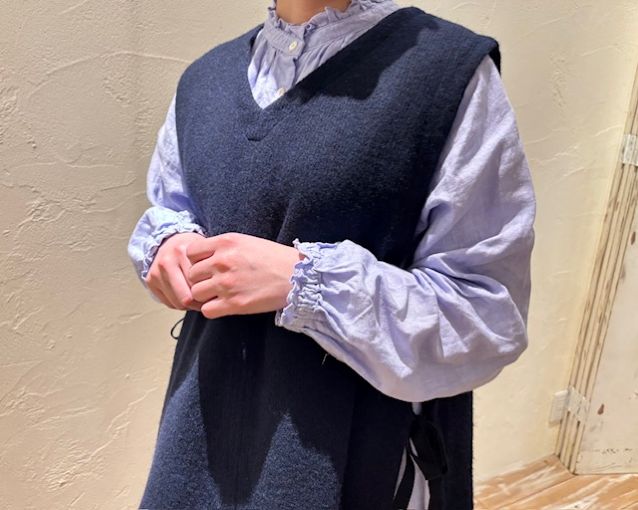 ベストやアウターから、ちらっと首元と袖元のフリルを覗かせるのもいいですね!