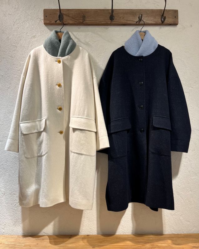 リネンウールツイードノーカラーコート (OFF WHITE / NAVY) ¥77,000 (税込) / nest Robe