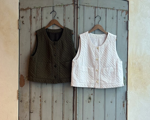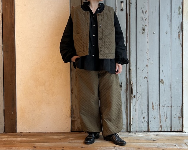 キルティングクロップドベスト (OLIVE / OFF WHITE) ¥33,000(税込) / nest Robe