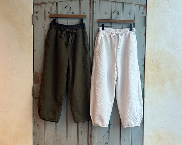 キルティングドローコードトラウザー (OFF WHITE / OLIVE) ¥37,400(税込) / nest Robe