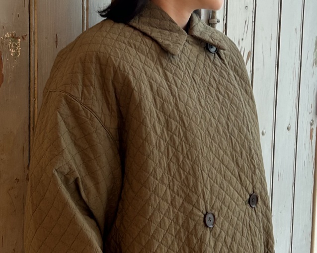 キルティングのほどよい張り感を生かした、ゆったりとしたAラインシルエットのマックコート。