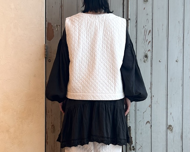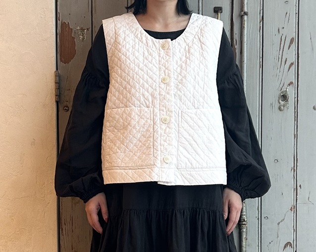 キルティングクロップドベスト (OFF WHITE / OLIVE) ¥33,000(税込) / nest Robe