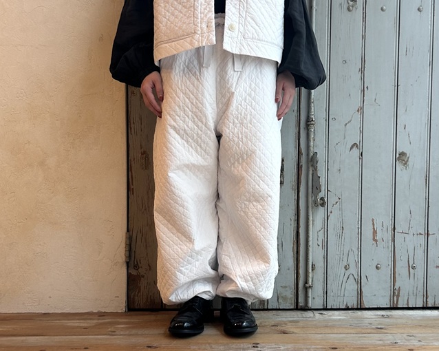 キルティングドローコードトラウザーズ (OFF WHITE / OLIVE) ¥37,400(税込) / nest Robe
