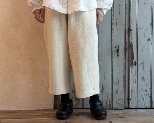 クロップド丈で重たくなりすぎず、秋冬の素材ながら軽やかに穿ける一本です。