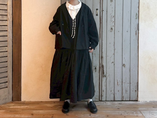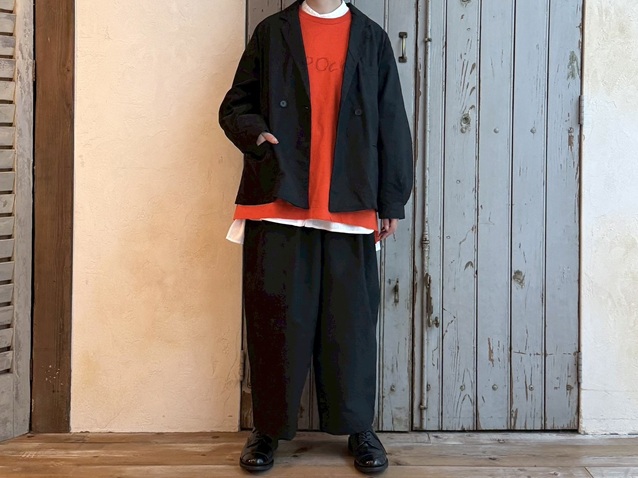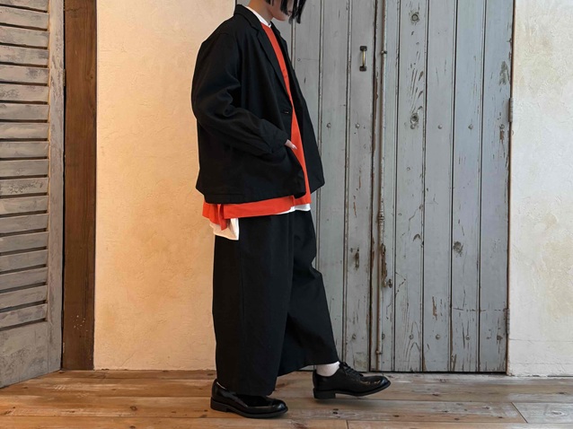 同シリーズのテーラードジャケットと合わせたときの一体感を大切にしています。