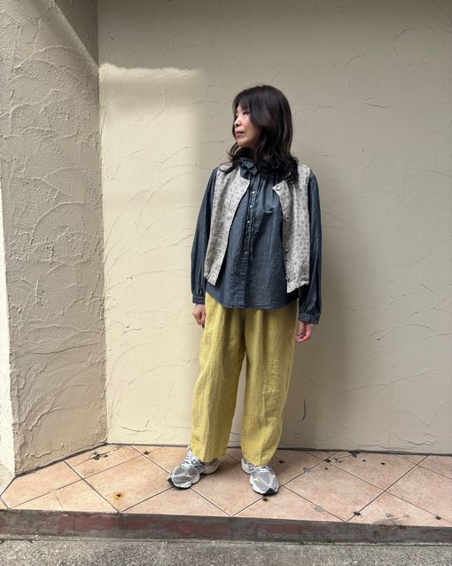 レモンカラーが春らしい、テーパードシルエットのパンツを合わせてみました。