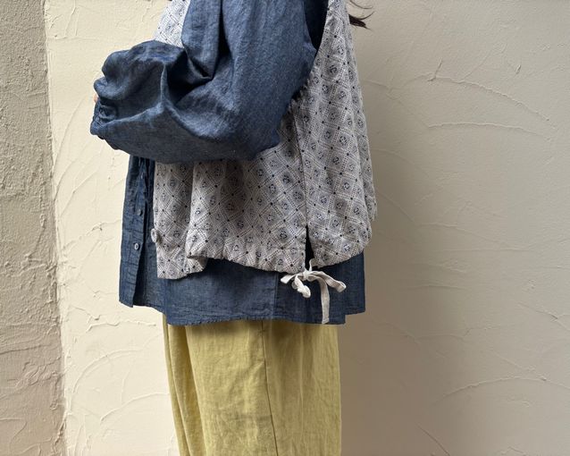 リネンプラッドプリント2wayベスト (柄)¥33,000(税込)/ nest Robe