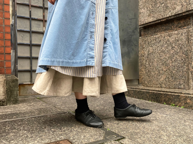 クラシカルなデザインが目を惹くワンピースとのレイヤードスタイルでのご紹介。
