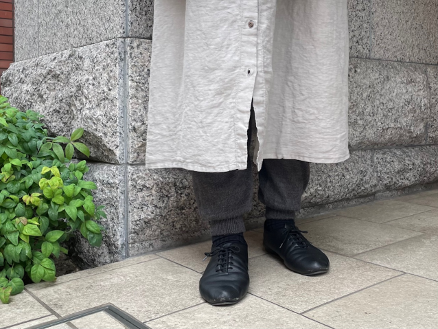ワンピースは裾のボタンを外して、下のニットパンツを覗かせても可愛いです。
