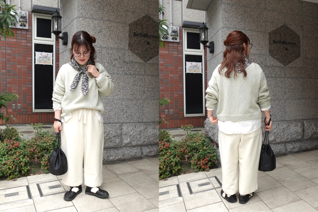 ブラウスとパンツをセットアップ風に併せた