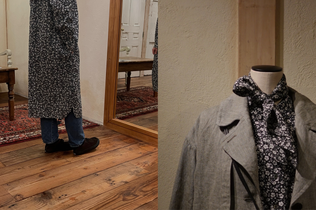 flower patternのスカーフで遊び心をプラス