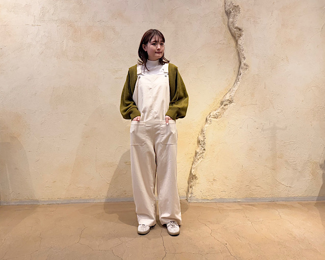秋らしいオリーブのボレロを使ったコーディネートです。