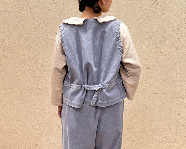 コーデュロイボタンルーズベスト (L・BLUE) ¥30,800(税込) / nest Robe