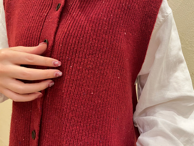 畔編みニットボタンベスト (WINE) ¥29,700(税込) / nest Robe