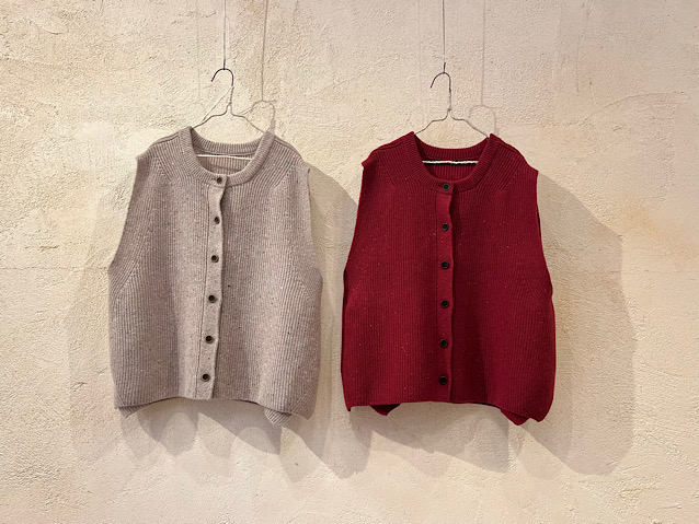 畔編みニットボタンベスト (BEIGE / WINE) ¥29,700(税込) / nest Robe