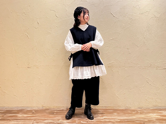 サイドはリボンになっているので、袖にボリュームのあるアイテムとも合わせやすいです。