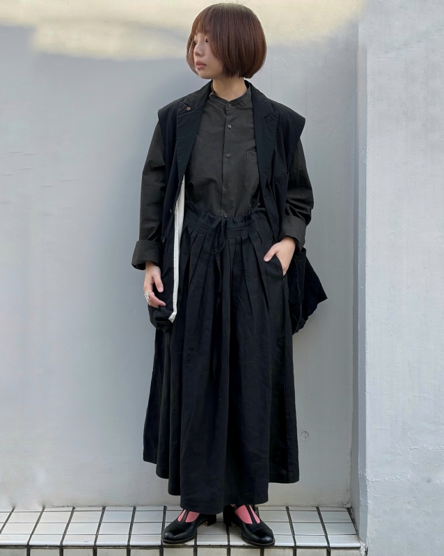 リネンフレアブレーシススカート(BLACK) ¥35,200(税込) / nest Robe