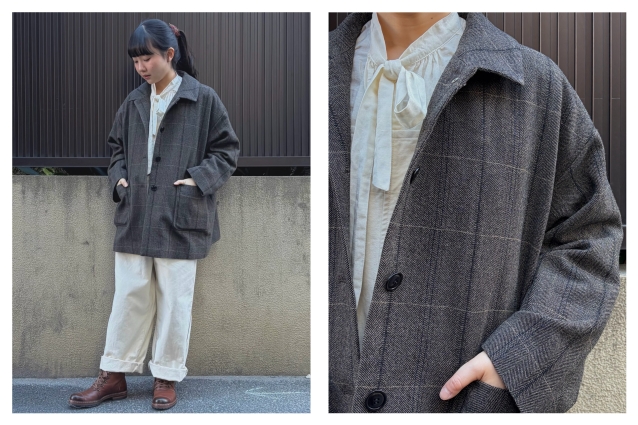 腰まで隠れる丈のゆったりとしたコートと