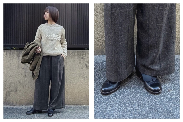 ウール素材のパンツと好相性で、