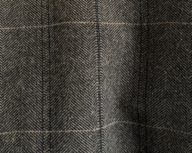 ウールナイロンのツイード素材にヘリンボンチェック柄を施し、