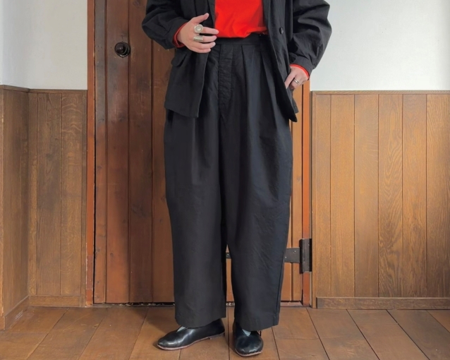パンツは動きやすいワイドテーパード。