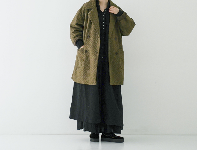 キルティング素材は、カジュアルな印象がある方もいると思いますが、こちらのコートはAラインシルエットで上品な佇まい。