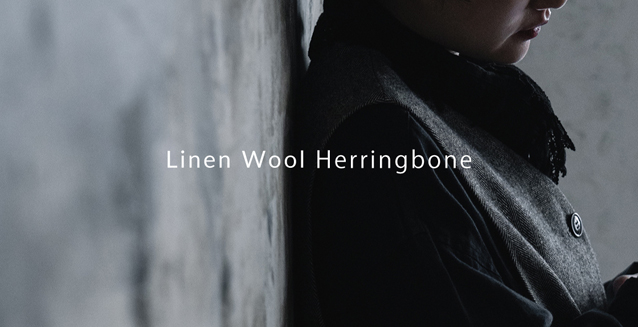 リネンとウールを掛け合わせ、柄のスケールを通常よりも細かく設計した別注ミニヘリンボーン。