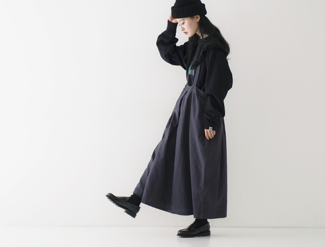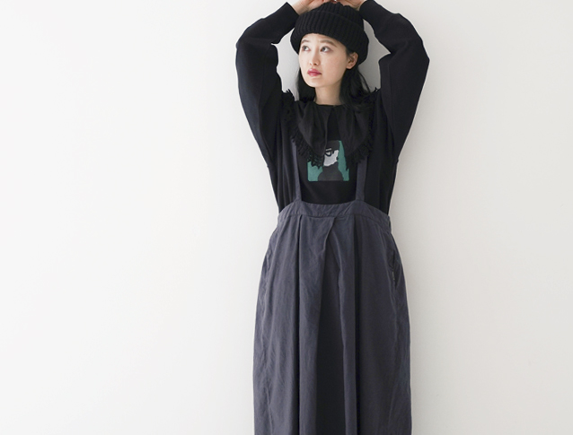 メインアイテムにチョイスしたのは、お久しぶりな感じの吊りスカート。