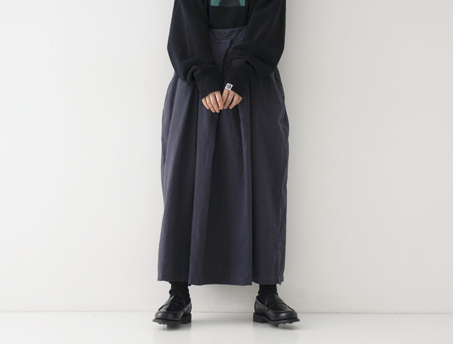 [UpcycleLino] 起毛タック吊りスカート(チャコールグレー) ★