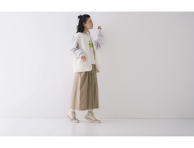 たっぷり分量感があって、スカート見えるするのがポイント。