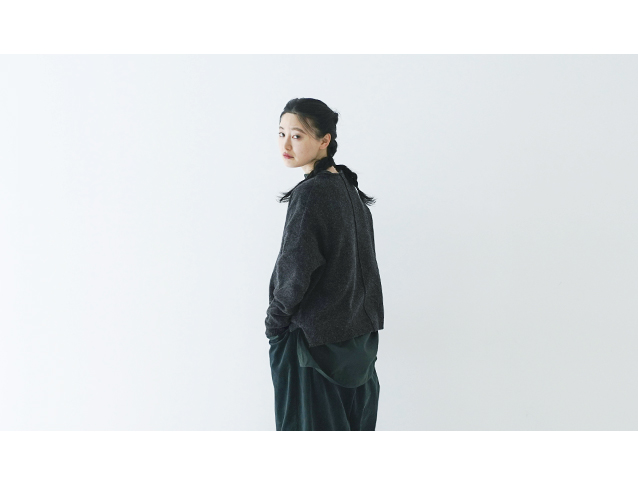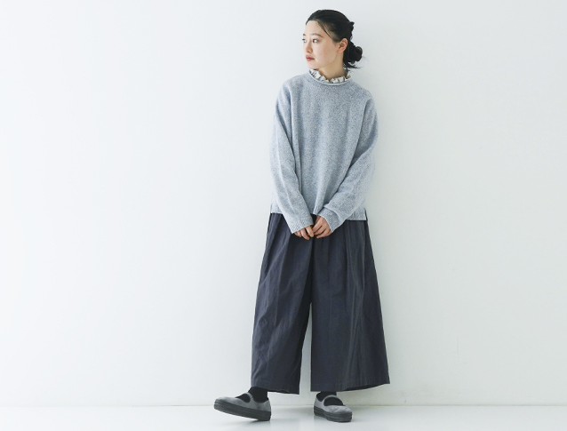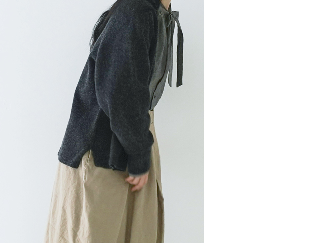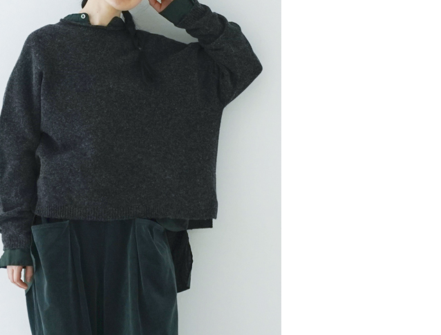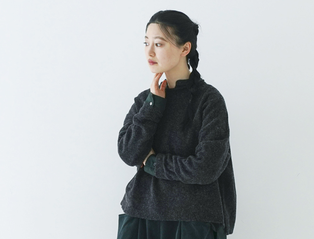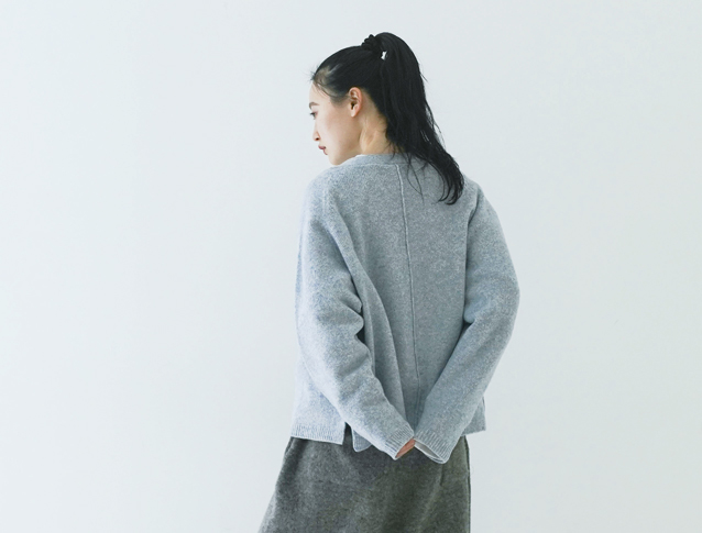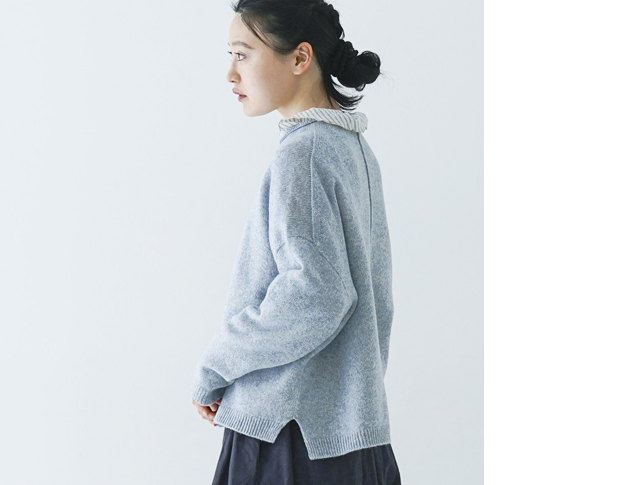 厚手のニットとは違い着ぶくれせずにすっきりと着れるので、カットソーライクな着用感で着ていただけるイメージです。