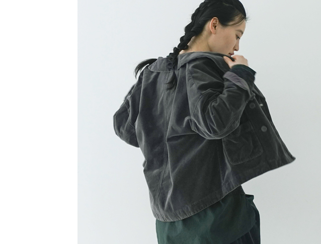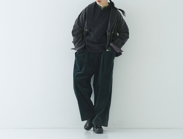 メンズライクなスタイリングに、上品なベルベットを。