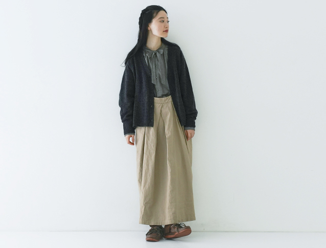 お気に入りの秋スタイルに羽織るだけであったか仕様になるカーディガンは、便利アイテム。