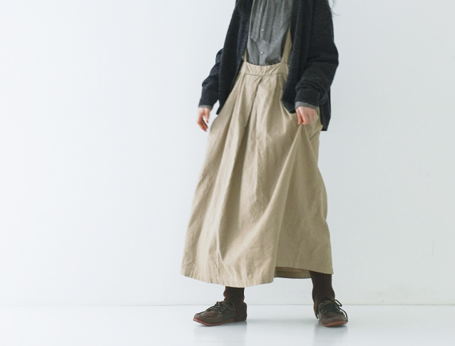 [UpcycleLino] 起毛タック吊りスカート (ベージュ) ★