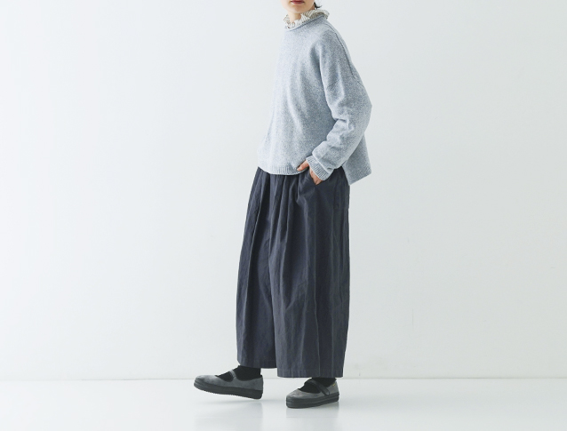 すっきりとした丈感は、ボリュームのあるボトムとも相性バッチリです。