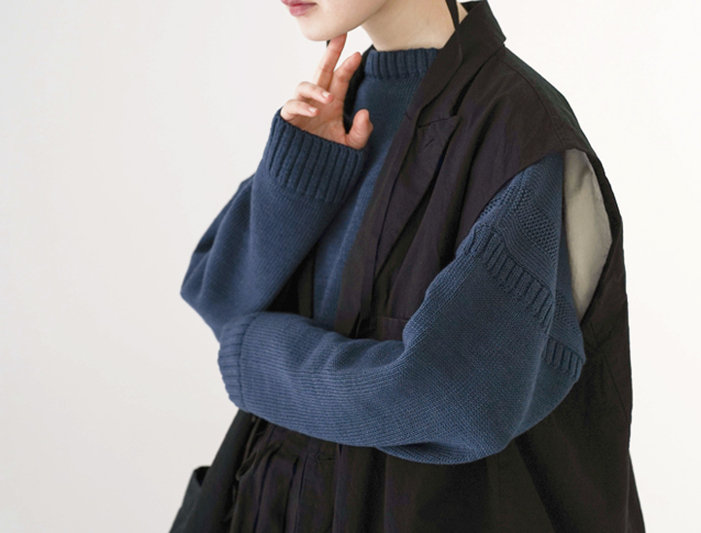 滝:「ジレ合わせだと、ガンジーニットの編み柄も活かせるのでおすすめです」