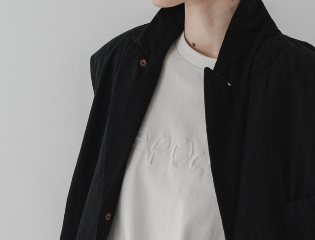 シリーズ名にもなっている「 epoch 」 の手書きテキストを刺繍しました。