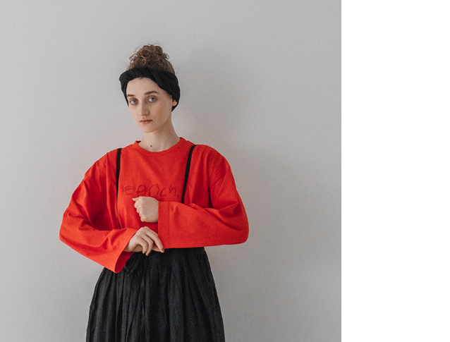 今回はちょっとキレイめで大人っぽくシャキッと着れるロンTee といったイメージです」