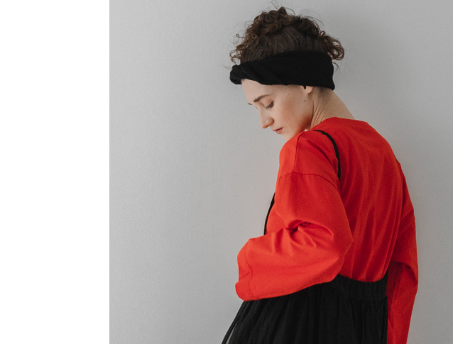 着るだけで元気がでるオレンジは、モノトーンな今回のシリーズの中で目を惹く存在。