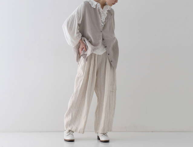 全体的にゆったりとした着心地のアイテムでまとめました。