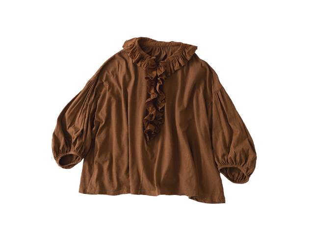 [UpcycleLino] 切替えフリルカットソーブラウス(ブラウン) ★