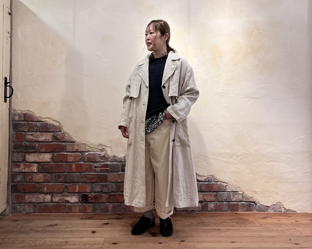 スーピマコットンのコートを使ったコーディネートがこちらです。