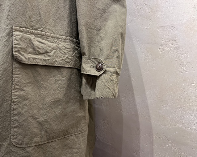 製品染めによる自然なシワ感とヴィンテージライクなボタンがアクセントになっているコート。