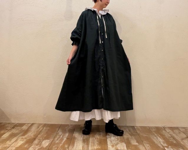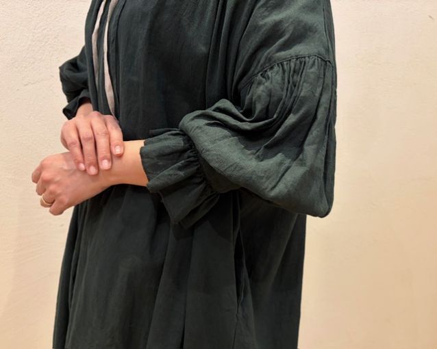 【UpcycleLino】キャッチワッシャースモックドレス (D・GREEN) ¥46,200(税込) / nest Robe