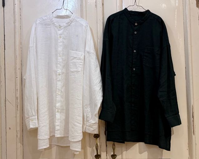 【UpcycyleLino】キャッチワッシャーバンドカラーシャツ (OFF WHITE/D・GREEN) ¥29,700(税込) / nest Robe