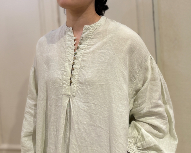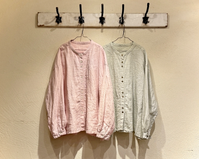 桜染めバンドカラーフレアブラウス ( PINK / L・GREEN ) ¥31,900 (税込) / nest Robe