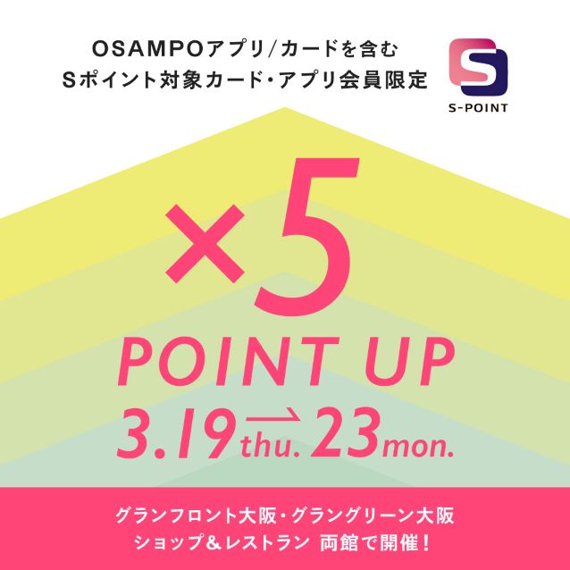 グランフロント大阪ではSポイント5倍キャンペーンを開催いたします。