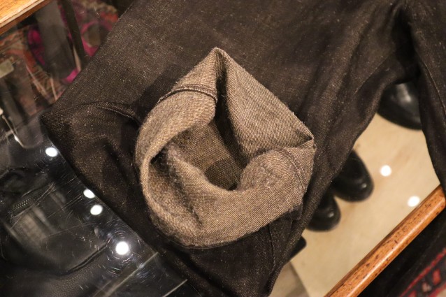 その為、白い緯糸を使用しているデニム生地の裏側は白っぽい色味になっているのに対し、