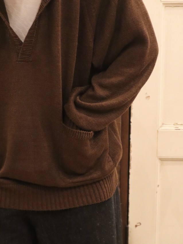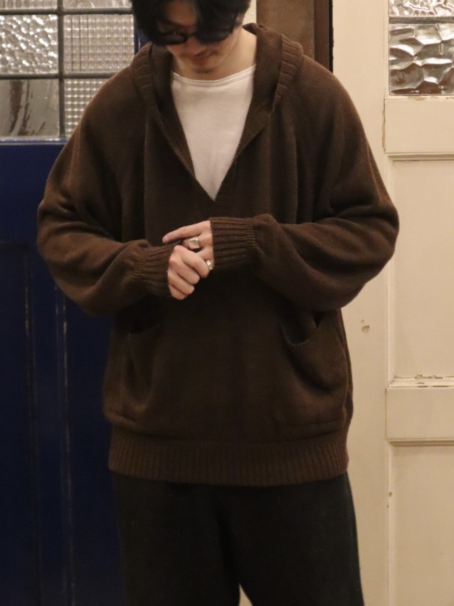 リネンニットパーカー(ダークブラウン、クロ)¥49,500(税込)